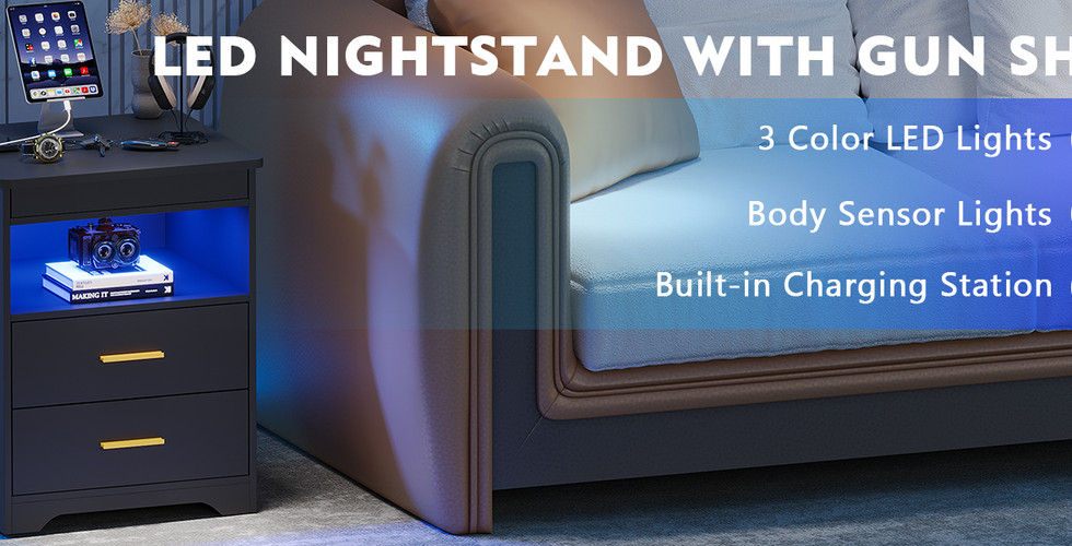 Are you looking for a stylish and functional nightstand for your bedroom? If so, you might want to check out the Gurexl Nightstand with locking hidden compartment. This nightstand is not only a great place to store your books, glasses, and other essentials, but also a smart device that features a bed side charging station with auto lighting sensor LED with 3 dimmable colors. You can easily charge your phone, tablet, or laptop without having to reach for an outlet or a cord. Plus, you can adjust the brightness and color of the LED light to suit your mood and preference. The nightstand also has a locking hidden compartment where you can keep your valuables, documents, or personal items safe and secure. The nightstand is made of durable wood, and comes in three color options: white, black, or gray. You can choose the one that matches your bedroom decor and style. The nightstand requires assembly, but don't worry, all the tools and instructions are included in the package. You can easily put it together in no time and enjoy your new nightstand. The Gurexl Nightstand with locking hidden compartment is a perfect addition to any modern bedroom. It combines elegance, convenience, and security in one sleek design. You can order it online or find it in your local furniture store. Don't miss this opportunity to upgrade your bedroom with this amazing nightstand! Click link below!
