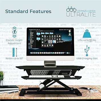 Are you looking for a way to improve your productivity and health while working from home? If so, you might want to consider the VERSADESK UltraLite Standing Desk Converter, 36". This is a sleek and sturdy device that transforms any desk into a standing desk in seconds. You can easily adjust the height of the desk with a push of a button, and enjoy the benefits of standing while working.